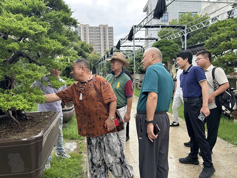 为深入了解江苏盆景产业的发展现状及盆景企业的生产经营情况,9月2日,中国花卉协会盆景分会会长施勇如、执行会长杜永红、秘书长郝继锋,江苏省花木协会副会长兼秘书长瞿辉,中国盆景艺术家协会常务副会长、中国盆景艺术大师芮新华,中花协盆景分会副会长、中国盆景艺术大师、江苏省花木协会专家委员会委员吴吉成,盆景高级技师张柏云等一行赴苏州进行调研。