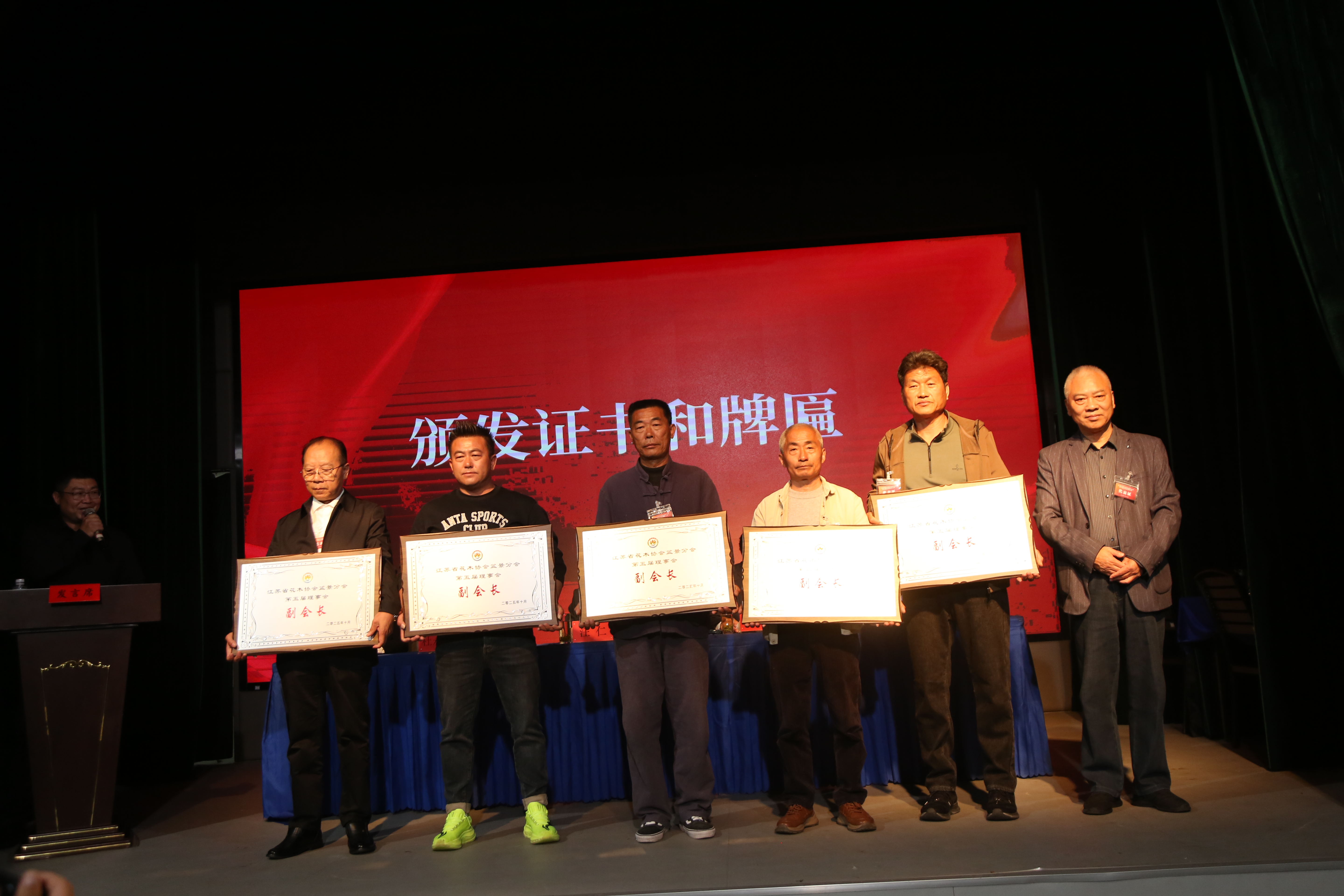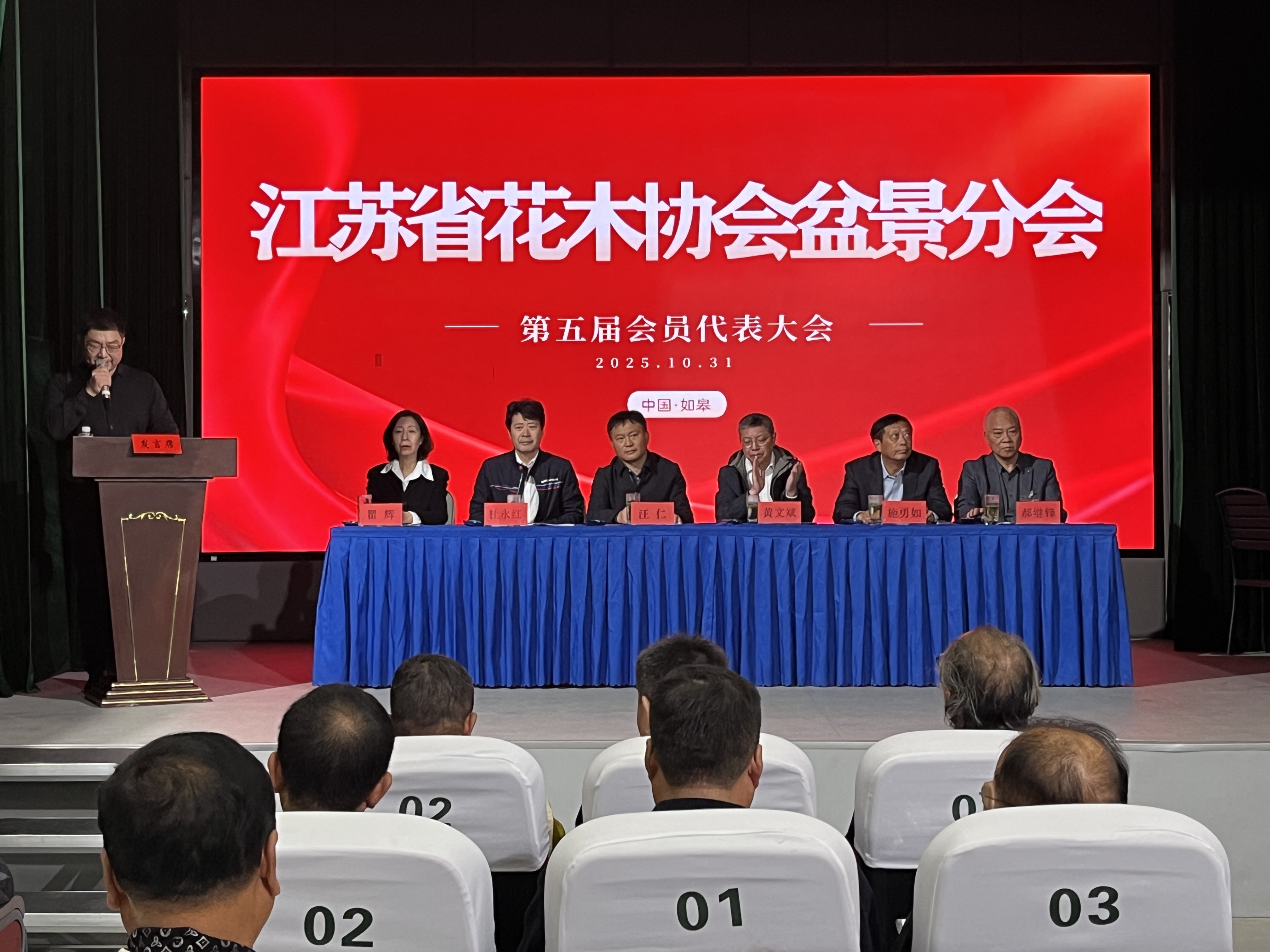 10月31日,江苏省花木协会盆景分会换届大会在如皋举行,省花木协会会长汪仁、副会长兼秘书长瞿辉、副会长施勇如、中国花卉协会盆景分会会长杜永红、如皋市政府副市长黄文斌等领导出席会议,来自省内盆景领域专家、技术推广、生产企业等部门代表80余人参会。会议审议通过第五届理事会工作报告、理事会成员产生办法、分会工作条例、理事及常务理事建议名单,还举行了授牌、签约仪式等活动。经会议选举,中国花卉协会盆景分会秘书长郝继峰任分会第五届理事会会长,花木大世界(如皋)国际园艺城公司总经理王皓任秘书长。