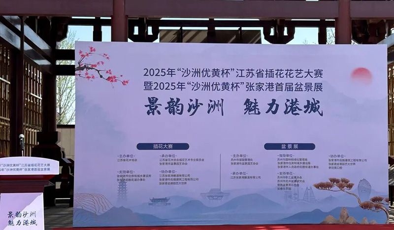 4月12-13日,2025年“沙洲优黄杯”江苏省插花花艺大赛在张家港市后塍街道成功举办。本次活动由江苏省花木协会主办,江苏省花木协会插花艺术专业委员会、张家港市盆景园艺协会承办。活动得到张家港市住房和城乡建设局、张家港后塍街道办事处大力支持。活动同期还举办2025年“沙洲优黄杯”张家港首届盆景展。4月13日上午,在张家港沙洲优黄文化园举行活动开幕式,张家港市副市长孟伟言、保税区党工委委员、管委会副主任陈雪明、省农业技术推广总站副站长顾鲁同、江苏省花木协会副会长兼秘书长瞿辉、张家港市住房和城乡建设局局长周文超等出席开幕式。出席开幕式的还有张家港市后塍街道、省花木协会插花艺术专业委员会、张家港市盆景园艺协会等相关部门机构的负责人、插花花艺及盆景专业人员等。